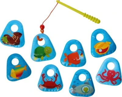 Die Meerestiere tummeln sich munter im Wasser. Und ein U-Boot gleitet lautlos durch die Tiefsee. Wer ist ein guter Angler und kann Tiere, U-Boot & Co. aus der Wanne fischen?