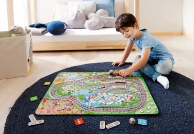 – XXL-Spielplan mit Schienennetz, Weichen und Haltestellen