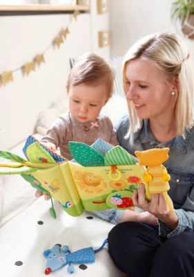 Aufgepasst, hier kommen Katze und Maus, die gemeinsam im lustigen Blätterhaus leben. Mit diesem Stoffbuch können schon kleine Kinder die faszinierende Welt der Geschichten entdecken und gleichzeitig mit den Helden zum Anfassen spielen. Denn sowohl Katze als auch Maus lassen sich aus dem Buch herausnehmen und an bestimmten Stellen wieder hinein setzen. Auch andere Elemente wie der Schmetterling und die Pflanzen können befühlt werden und liefern so nicht nur optische, sondern auch haptische Reize, die beim Vorlesen zusätzlich um ein auditives Erlebnis ergänzt werden. Ganz viel Spaß in kleinem Format!
