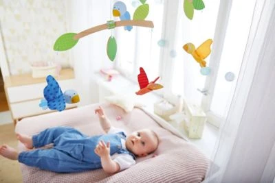 Piep, piep piep, ich hab dich lieb! Dieses Mobile ist mit zauberhaften Vögeln ausgestattet. Wenn es bewegt wird, schlagen die Vögel mit ihren Flügeln und sorgen so für leuchtende Augen bei den Kleinen. Ideal auch als Ablenkung, zum Beispiel beim Wickeln. Dank der hochwertigen Materialien ist das Mobile auch besonders langlebig.