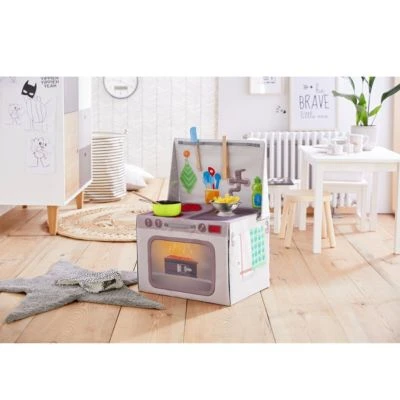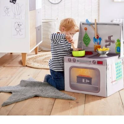 Kochen wie die Großen: In der Spielküche Kulinario von Haba können angehende Köchinnen und Bäcker ihrer Kreativität freien Lauf lassen. Spielküche von Haba mit aufklappbarem Backofen Schlaufen zum Aufhängen von Küchenutensilien zusammenklappbar ab 3 Jahren geeignet Herdplatten, Wasserhahn und Befestigungsmöglichkeiten für Kochlöffel und Co.: Diese Küche bietet alles, was für realitätsnahe Rollenspiele rund um Kochen und Backen, Abwaschen und Aufräumen benötigt wird. Highlight des farbenfrohen Designs ist der Backofen, der aufgeklappt werden kann. Die anderen Elemente sind aufgedruckt. Besonders praktisch: Ist die Spielküche nicht in Betrieb, kann sie zusammengeklappt und platzsparend verstaut werden.