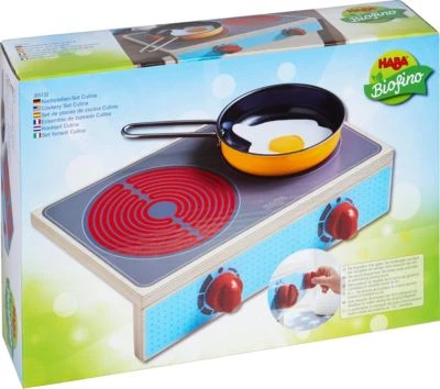 HABA Kochstellen-Set Culina. Kein Platz für eine Spielküche? Dann ist dieses Kochstellen-Set eine praktische Alternative Kinder können hier ein Spiegelei in der Pfanne braten. Die Herdplatten und das Spiegelei laden zum gemeinsamen Kochen mit dem besten Freund oder der Freundin ein. Der besondere Clou dabei: Die Herdknöpfe sind drehbar und geben ein witziges Klick-Geräusch von sich.