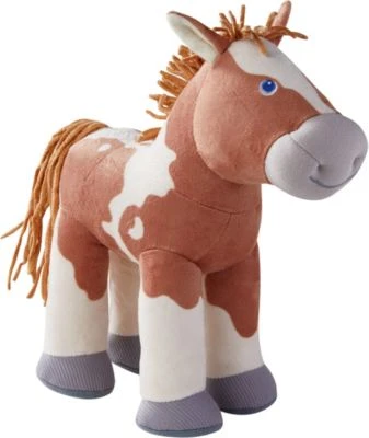 HABA Fohlen Luna. Das niedliche Fohlen erobert die Herzen kleiner Pferdefreunde im Sturm. Körper wattiert, Mähne und Schweif aus Chenille, Füße aus Cord.