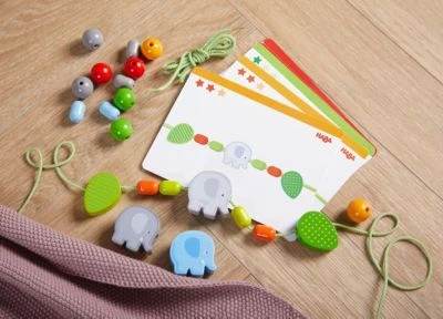 Das HABA Fädelspiel Elefanten bringt 12 Ideen mit, in welcher Reihenfolge die hübschen Fädelsteine anzuordnen sind. Aus 3 Elefanten, 2 Blättern und dazwischen 16 farbenfrohe Holzperlen ergeben sich jede Menge Möglichkeiten! Mit diesem Motorikspielzeug können Kinder ab 3 Jahren die Fädelsteine auch nach eigenen Ideen anordnen und ihrer Kreativität freien Lauf lassen. Die hochwertigen Holzfiguren eignen sich auch prima fürs freie Spiel. Spielerisch fördert die Fädelkette für kleine Tierfreunde Konzentration und Feinmotorik und animiert kleine Fädel-Künstler zu kreativen Gestalten. Buche, Pappe, Polyamid 160mm x 155mm x 55mm