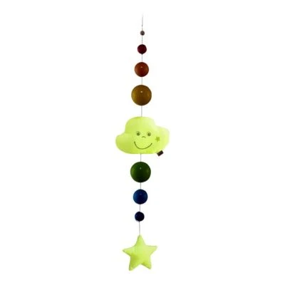 Beruhigend und dekorativ: Das Mobile Regenbogenwelt von Haba überrascht mit im Dunkeln leuchtenden Elementen. Mobile Regenbogenwelt von Haba mit bunten Holzkugeln in unterschiedlichen Größen Wolke und Stern leuchten im Dunkeln aus Holz und Textil ab der Geburt geeignet Am Wickeltisch oder im Gitterbett bietet das Mobile Regenbogenwelt von Haba Kindern eine angenehme, beruhigende Wirkung. Das Modell besteht aus verschiedenfarbigen und unterschiedlich großen Holzperlen. Diese bewegen sich im Luftzug und schaffen so visuelle Anreize. Zudem gehören eine Wolke und ein Stern aus Textil zum Mobile. Diese leuchten im Dunkeln. So begeistern sie schon die Kleinsten, wenn es Zeit ist, ins Bett zu gehen.