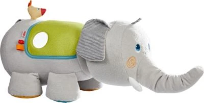 Das niedliche Entdeckertier im Elefantendesign von Haba eignet sich klasse als Schmuse- und Spielpartner für Kinder! Der süße Elefant bietet jede Menge tolle Spielmöglichkeiten für kleine Entdecker*innen. Hier gibt es verschiedene Texturen zu erkunden und in dem Spiegelchen können Kinder sogar sich selbst entdecken. Der Elefant bietet viele tolle Rassel- und Greifelemente, hat einen beweglichen Kopf und ein quietschendes Vögelchen auf dem Rücken. Das Öhrchen mit Beißkante dient zudem für die Zahnfleischmassage bei zahnenden Babys.