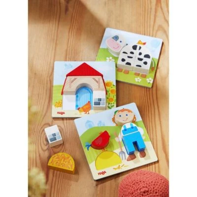 Mit dem Zuordnungsspiel Bauernhof von Haba lernen Kinder ab 18 Monaten spielerisch unterschiedliche Formen und Farben kennen. Zuordnungsspiel Bauernhof von Haba 3 Motivplatten und 14 Plättchen aus Holz ab 18 Monaten geeignet Ist das der Bauch der Kuh? Und wo sitzt der Hahn? Die Zuordnung der 14 Holzbausteine in die passenden Aussparungen auf den drei Motivplatten macht nicht nur viel Spaß, sondern schult auch spielerisch die Feinmotorik.