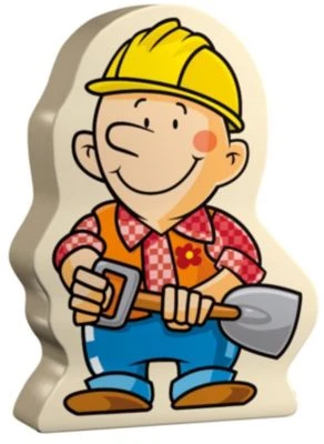 Die Puzzle-Baustelle besteht aus sechs Puzzles mit jeweils 2 – 4 Teilen sowie einer Holzfigur zum freien Spiel.