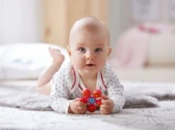 Dieser robuste Kunststoff-Greifling begeistert Babys durch einen spannenden Klangeffekt.