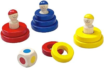Schönes Holzspiel für Kleinkinder! Es führt Kinder vom freien Spiel an erste Regelspiele heran! Das Spiel enthält 30 Spielideen, unter anderem auch ein Spiel zum Zuordnen von Farben und Größen.