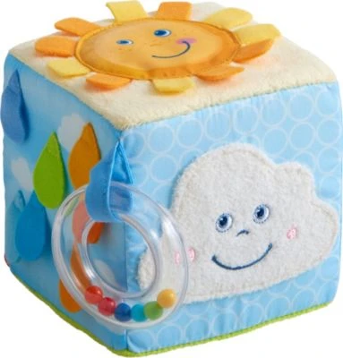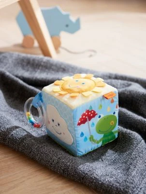 Der bunte Spielwürfel von Haba bietet Kindern mit haptischen, akustischen und optischen Anreizen viel zu entdecken. Spielwürfel von Haba farbenfrohes Design mit verschiedenen Motiven Fühl-Elemente, rasselnder Greifring mit bunten Perlen, Knister- und Spiegelfolie, Zwitscher-Effekt aus Textil ab 6 Monaten geeignet Der Spielwürfel von Haba fördert Kinder in ihrer motorischen und sensorischen Entwicklung. Viele Ausstattungsmerkmale regen zum Fühlen und Entdecken an: Der weiche Würfel verfügt über diverse Motive, einen rasselnden Greifring mit bunten Perlen und verschiedenartige Oberflächen. Knister- und Spiegelfolie sowie ein Zwitscher-Effekt sorgen zudem für auditive Anreize. Kinder ab sechs Monaten werden von dem farbenfrohen Spielzeug aus Textil zum Tasten, Fühlen und Erleben animiert.
